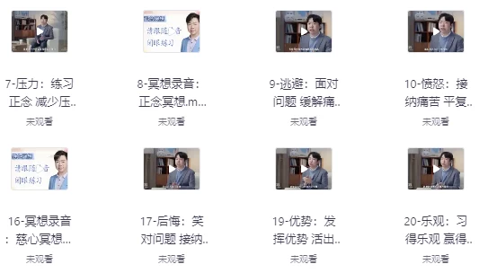 课程特别设计了每日练习、小组互动和导师反馈环节,帮助学习者在实际生活中逐步建立情绪管理能力,缓解焦虑、压力等常见心理困扰,最终实现更从容应对挑战、提升幸福感的成长目标。