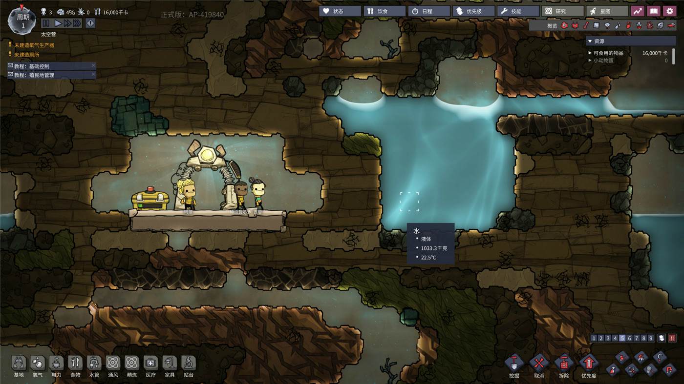 《缺氧》是由开发过《饥荒》的Klei Entertainment所制作并发行的一款模拟游戏,其美术风格也与《饥荒》一脉相承,并同样采用了横版2D布局。这是一个太空殖民地模拟游戏,玩家需要管理你的居民,帮助他们挖掘、建立和维护一个地下的小行星基地。你需要水、食物、氧气和适宜的温度来维持他们活着并满足他们。