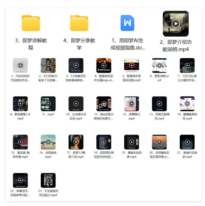 即梦AI提供了多种教学资源,包括视频教程和操作指南,如: